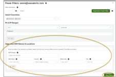 In the Power Filters tab, click the down arrow to select a country, IP address, or Autonomous System Number (ASN) to whitelist.