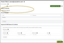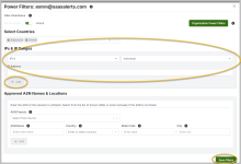In the Power filters window, click the down arrow to select a country to whitelist or begin typing a country name in the text box. Then, click Save Filters.