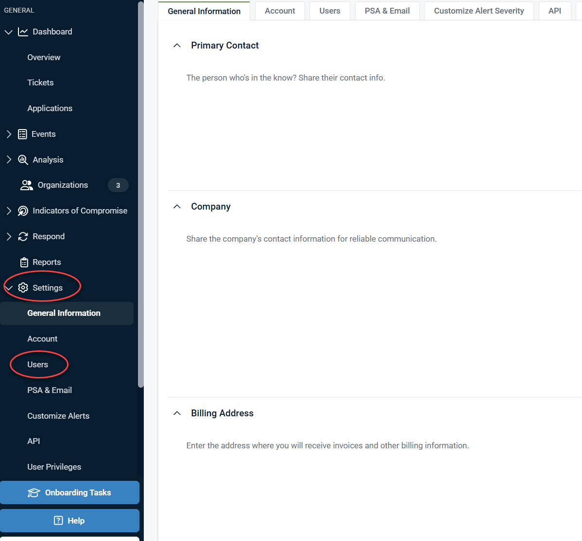 MSP admin users have all abilities of the MSP user and the ability to affect global changes, make billing and address changes, access the Respond module, update report branding, and invite MSP users and elevate them to admins. Refer to Elevating an MSP User to an MSP Admin.