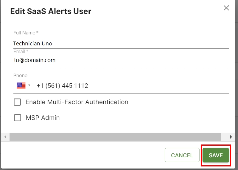 The preceding steps may also be used to promote an MSP User to an MSP Admin.