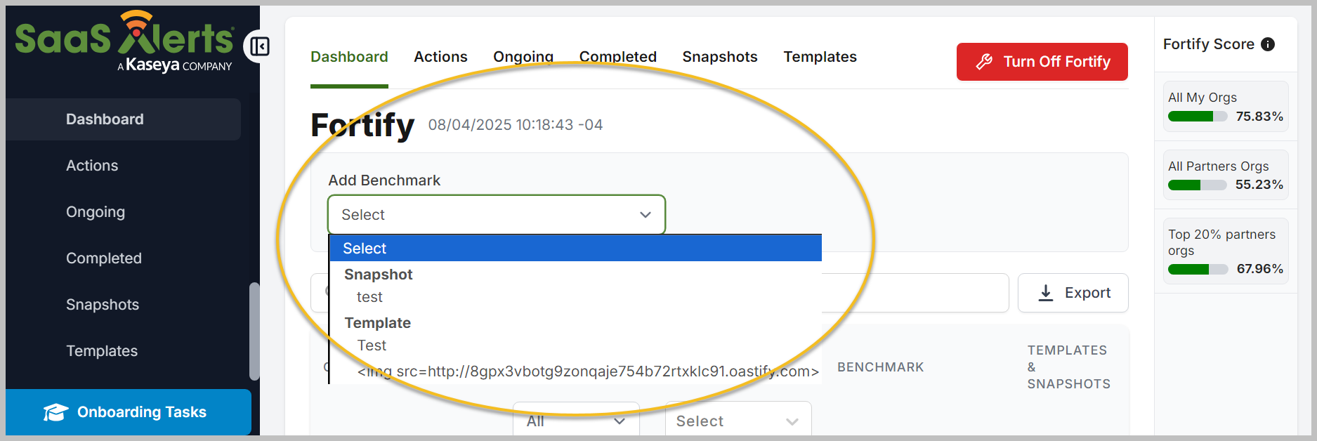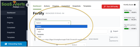 Select either a snapshot (a saved state of a configuration) and/or a template (a predefined set of policies/actions) from the Dashboard tab.