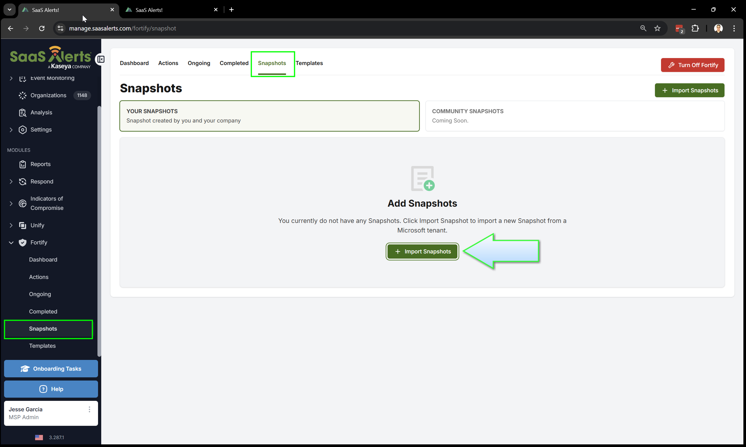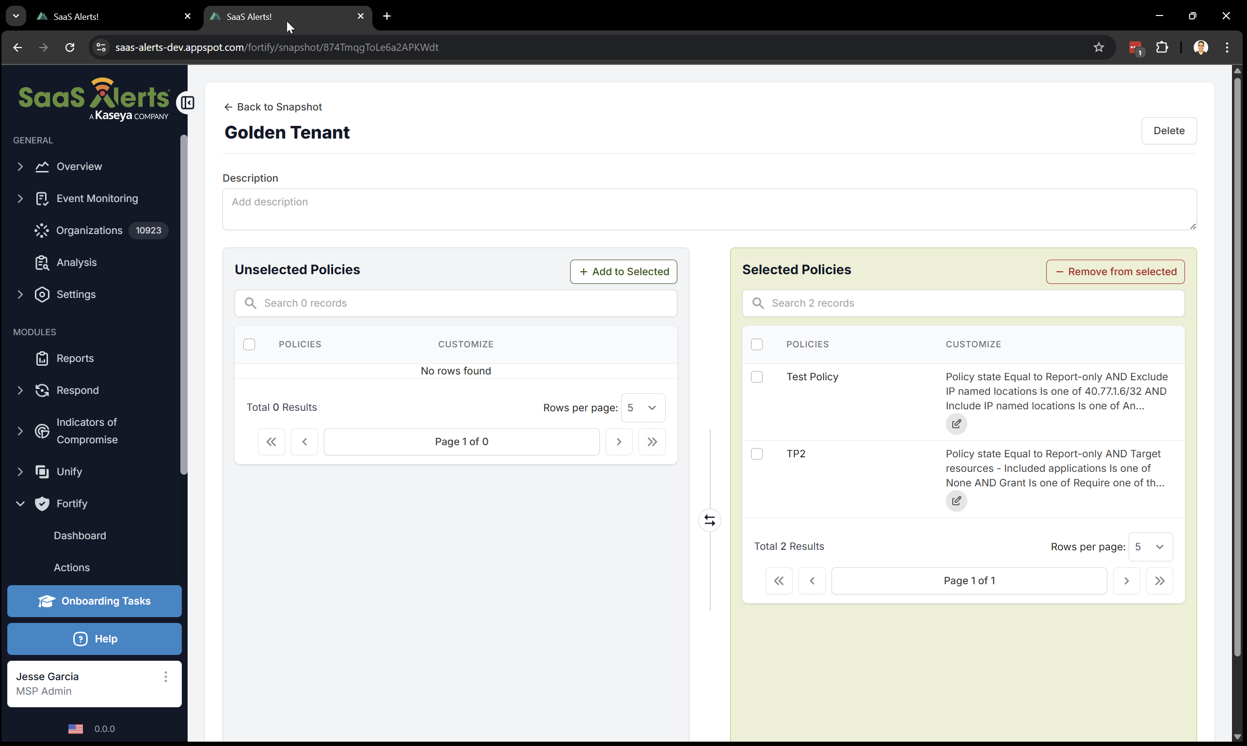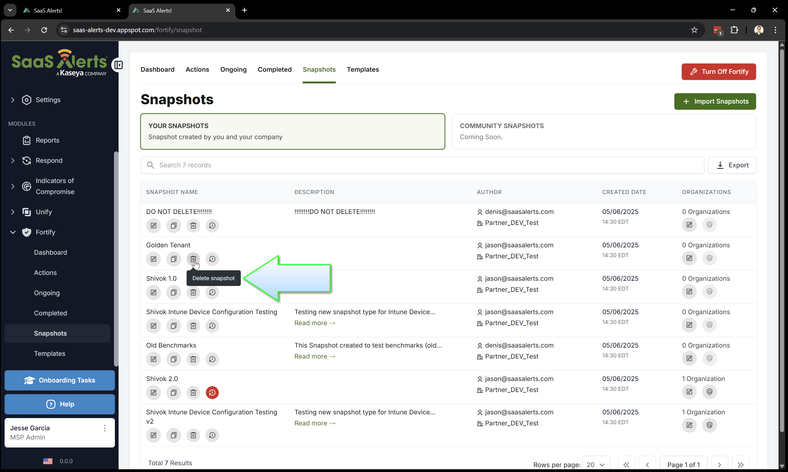 Partners can now add organizations to the Snapshot template from the imported Microsoft tenant by clicking the Modify Organizations icon under the Snapshots tab.