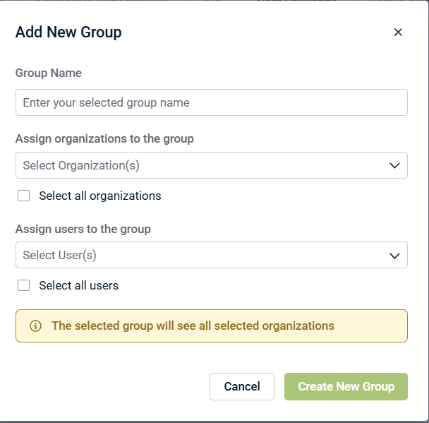 NOTE If the Create New Group option remains grayed out after selecting Select all users, it means no MSP Users exist in your partner instance. RBAC works only on non MSP Admin accounts. Creating a new MSP User account or demoting an existing MSP Admin account will allow you to create a group as expected.