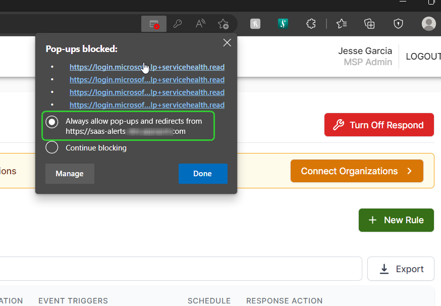 Now that the connection has been restored, your customers will be monitored by your active Rules in the Respond module and it will remediate any future events previously set in the Rule.
