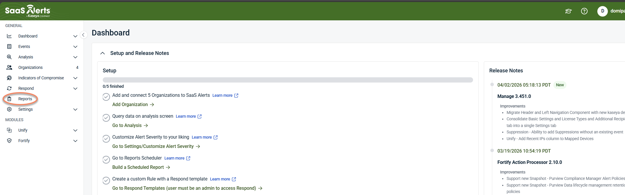 This article explains how to create and manage scheduled reports in SaaS Alerts. Scheduled reports let you send predefined reports to selected recipients on a one‑time or recurring basis. This KB focuses on how scheduling works and where each option is configured—it does not describe the contents of individual reports.