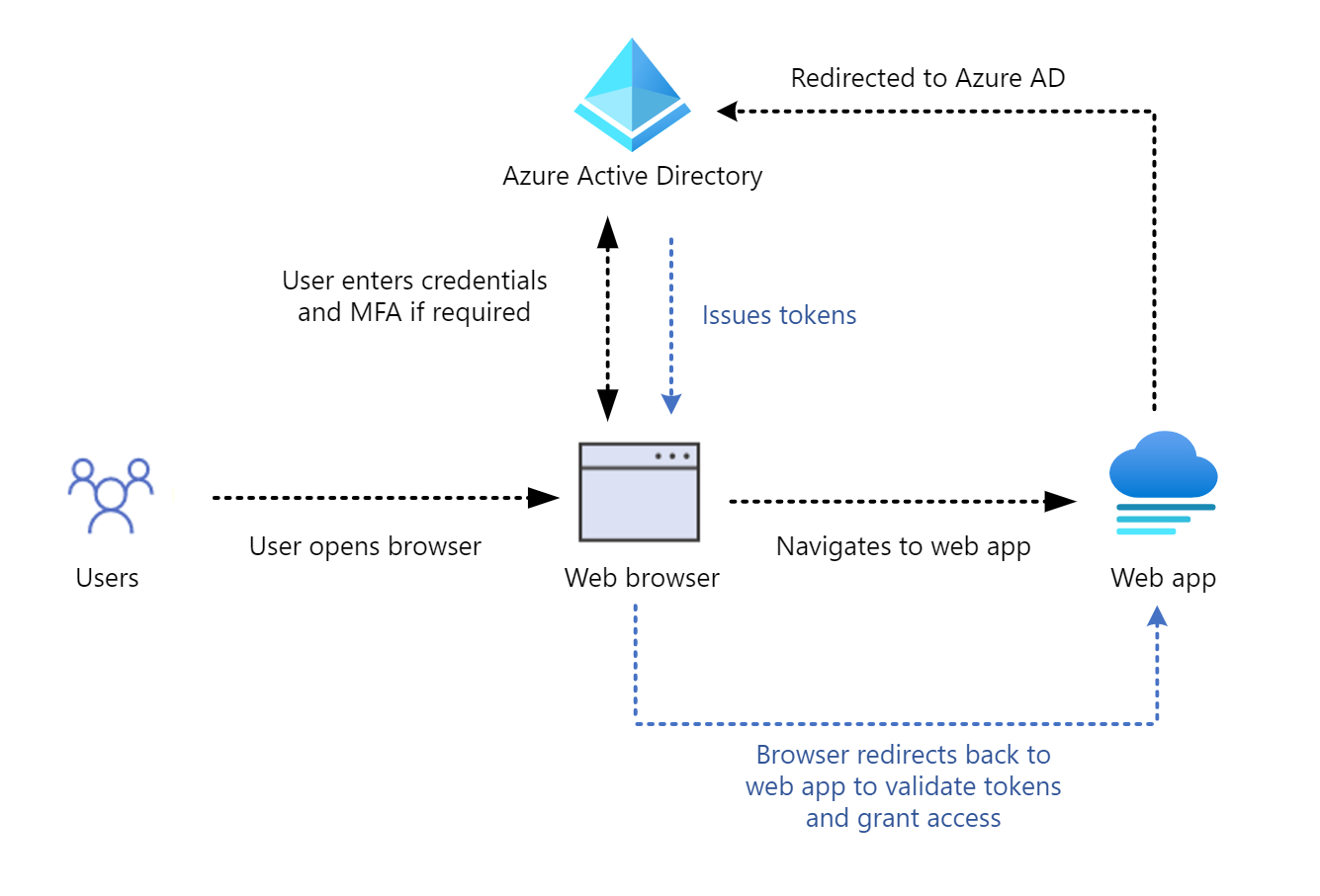 Tokens are at the center of OAuth 2.0 identity platforms, such as Azure Active Directory (Azure AD). To access a resource (for example, a web application protected by Azure AD), a user must present a valid token. To obtain that token, the user must sign into Azure AD using their credentials. At that point, depending on policy, they may be required to complete MFA. The user then presents that token to the web application, which validates the token and allows the user access.