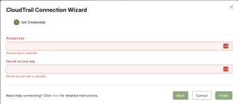 - Enter the access and secret access keys to finish connection.