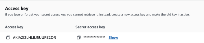 - Download your access key (the secret key will not be visible at a later time).